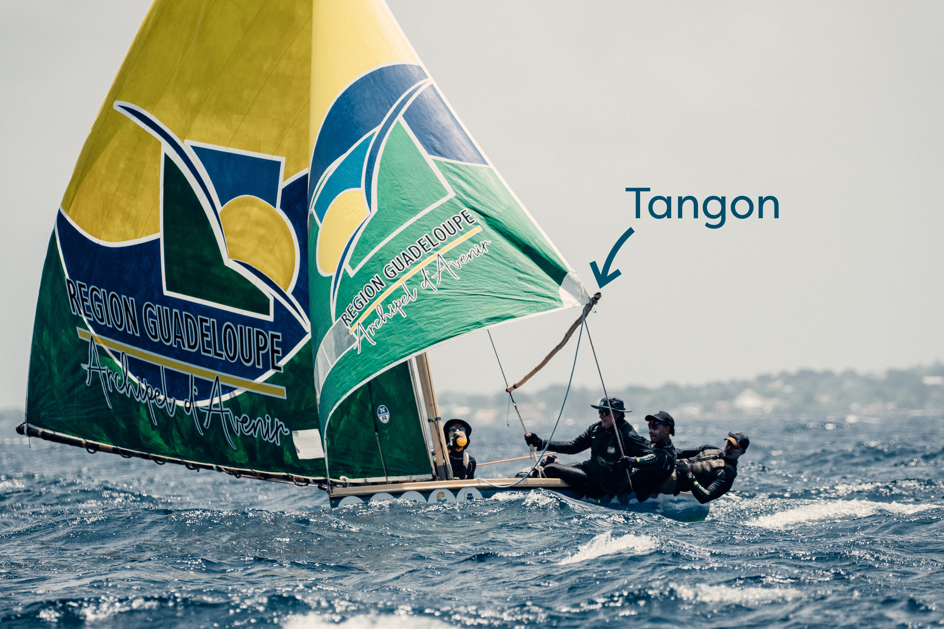 Sur une saintoise, le tangon est souvent manipulé par le Chat (Focquier) ou un autre équipier avant, au moment opportun, et peut être fixé temporairement ou tenu à la main selon la situation. C’est un outil simple mais très efficace, essentiel pour tirer le meilleur parti du foc lorsque le vent est plein arrière.