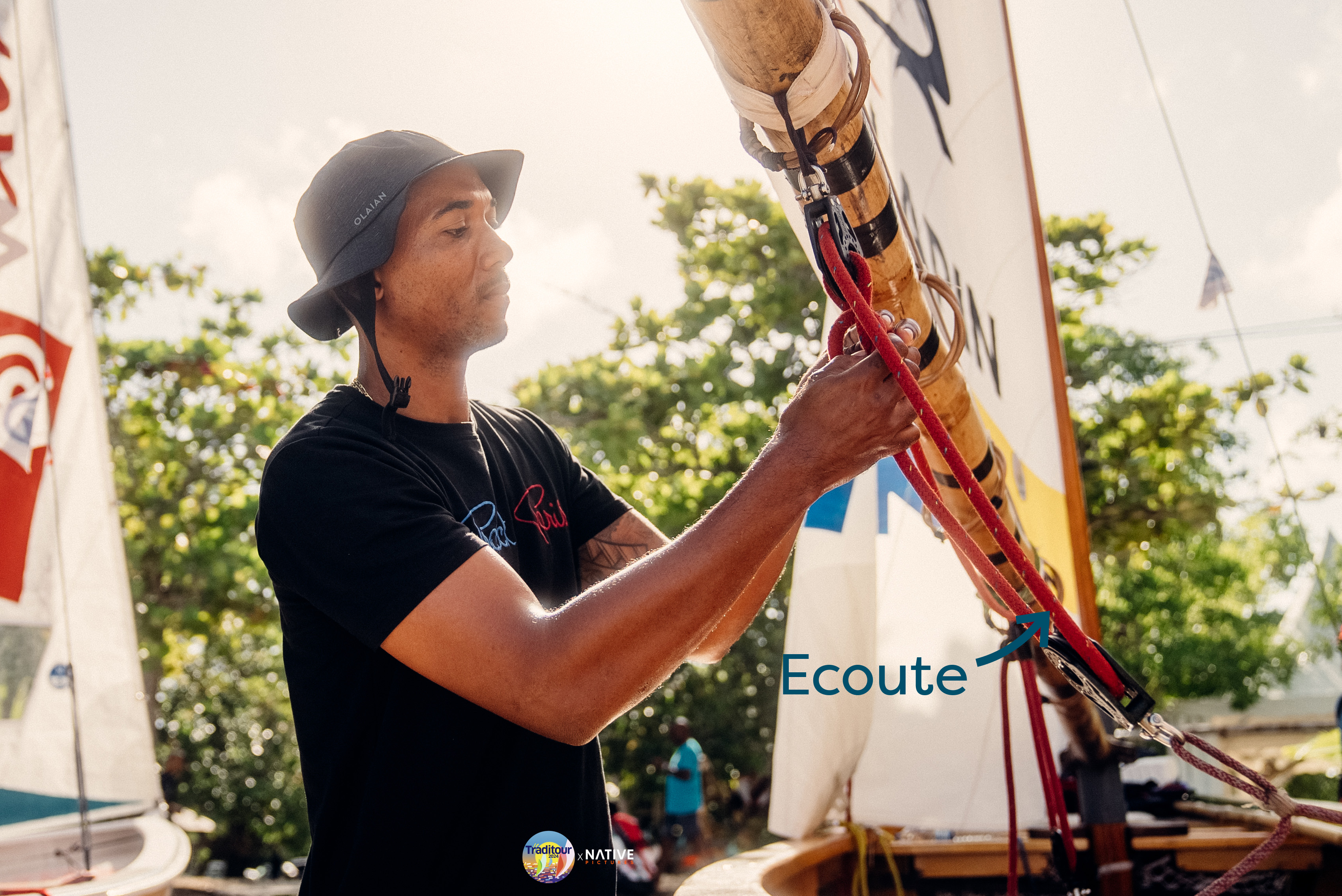 Sur une saintoise, il y a principalement deux écoutes : une pour la grande voile et une autre pour le foc. En tirant (border) ou en relâchant (choquer) ces cordages, l’équipage ajuste la tension et l’angle des voiles pour capter au mieux le vent, selon l’allure du bateau. Les écoutes sont manipulées en permanence pendant les courses ou les navigations actives, et leur bonne gestion est cruciale pour la vitesse et la stabilité du canot. Souvent positionné au centre du bateau, "GV" est le membre de l’équipage chargé du réglage de la Grande Voile, en coordination avec le focquier (appelé aussi le chat) responsable du foc et le barreur. Les écoutes sont donc les "commandes" principales des voiles, au cœur de la performance du canot.